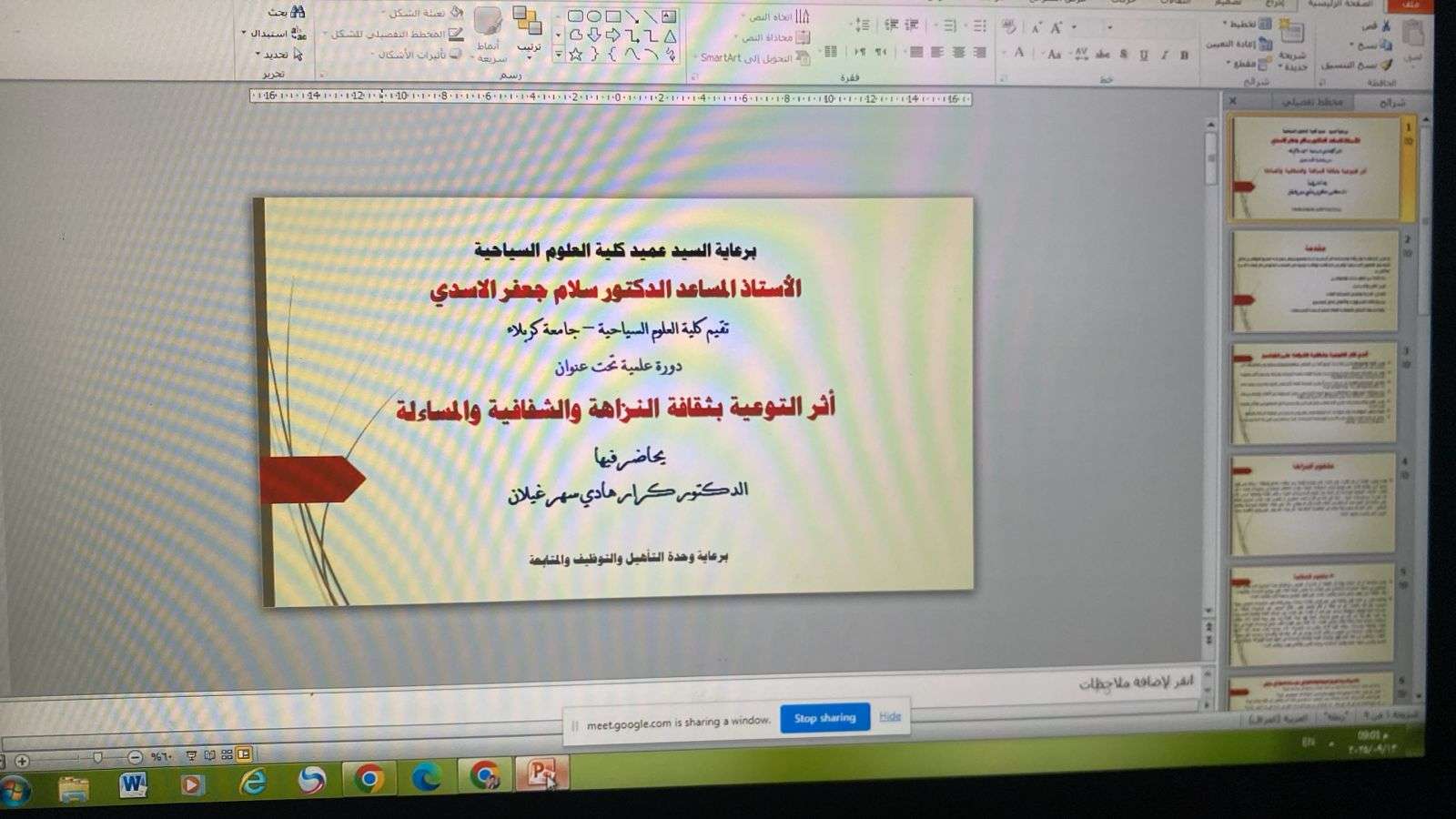 كلية العلوم السياحية _تنظم دورة إلكترونية حول ثقافة النزاهة والشفافية والمساءلة