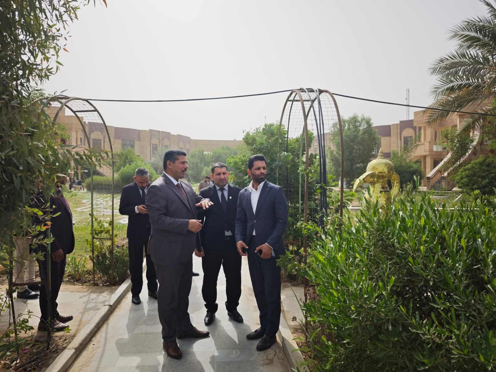وتضمنت الزيارة جولة ميدانية في حدائق ومرافق الكلية، حيث أشاد الدكتور المعموري بجهود الملاكات الساندة في الحفاظ على جمالية البيئة الجامعية، مؤكداً أهمية هذه الجهود في دعم المسيرة التعليمية وتوفير أجواء مناسبة للطلبة والتدريسيين.