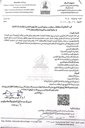 جامعة كربلاء تطلق جائزة الجامعة للريادة والابتكار 2026 لدعم المشاريع العلمية والتكنولوجية